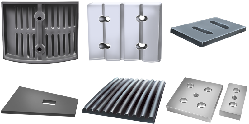 5、破碎機篩板:破碎機篩板也叫破碎機漏板、破碎機篦板、破碎機底板等。常見的破碎機篩板有長方形、方形、圓形、窄細孔形、花板形等,材質有高錳鋼、高鉻鑄鋼、耐磨合金等。