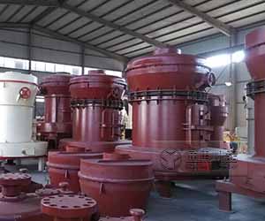 高壓懸輥磨主機內,磨輥吊架上緊固有1000-1500公斤壓力的高壓彈簧。開始工作后,磨輥圍繞主軸旋轉,并在高壓彈簧與離心力的作用下,緊貼磨環滾動,其滾動壓力比同等動力條件下的雷蒙磨粉機高 1.2 倍,故產量大為提高。當被磨物料進入磨腔后,由鏟刀鏟起送入磨輥與磨環之間進行碾壓,碾壓后的粉末隨鼓風機的循環風帶入分析機,合格細粉隨氣流入旋風集粉器即為成品,大顆粒物粒落回重磨。循環風返回鼓風機再重復以上過程,余風則進入袋式除塵器凈化。當磨輥與磨環達到一定磨損后,調整高壓彈簧長度,保持磨輥與磨環之間恒定碾壓力,從而保證穩定的產量與細度。