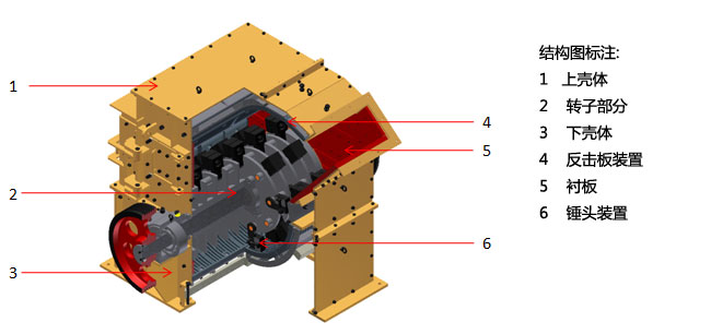 高效細(xì)碎機工作時,物料從入料口進(jìn)入破碎腔體內(nèi),通過高速旋轉(zhuǎn)帶有錘頭的轉(zhuǎn)子沖擊破碎,經(jīng)過多次的機打石和石打石后,能夠通過篦網(wǎng)的物料由料口排出,不能通過的物料直至破碎到能夠通過篦網(wǎng)為止。