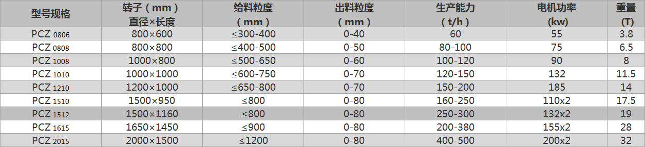 PCZ單段重錘式破碎機可根據用戶要求調整蓖板與轉子之間的間隙,改變出料粒度,以滿足不同用戶的不同需求。結構簡單,破碎比大,生產效率高。可作干、濕兩種形式破碎。