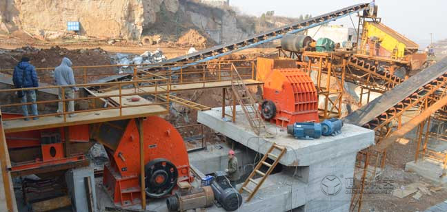 配置的這條時產500噸的砂石生產線。主要的設備配置有PCZ2015重型錘式破碎機、兩臺兩層高效振動篩以及相對應的脈沖式除塵器等。我們的新型重型錘式破碎機集合反擊式破碎機和錘式破碎機的優點,化二級破碎為一級破碎,為客戶節省了35%的成本,同時所產出的成品砂石結構均勻、粒型立體,抗壓性好,飽受客戶歡迎。結構設計的合理性使物料在機腔內反復碰撞形成自粉碎,極大的降低了錘頭以及耐磨部件的消耗。為客戶在維修和保養方面節省了大量的人力財力。